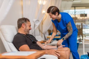 At your first appointment, we’ll take a few extra minutes to get to know you and ensure your safety. We’ll discuss your wellness goals, review your medical history, take your vitals, and have you complete a brief waiver. Most IV therapy sessions take about 30 minutes—for your first visit, please plan for an additional 15 minutes for the intake process.